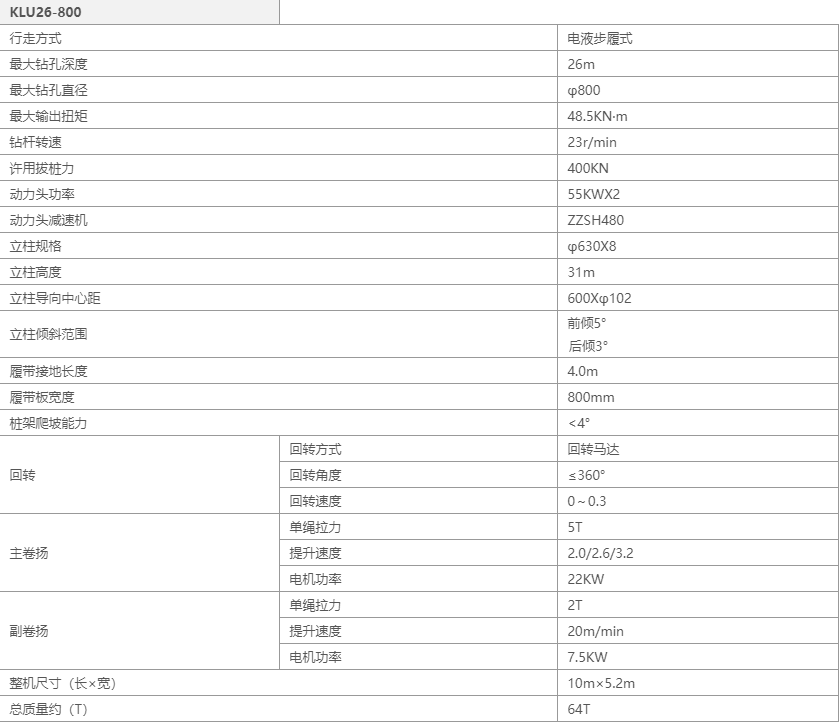 KLU26-800长螺旋钻机参数