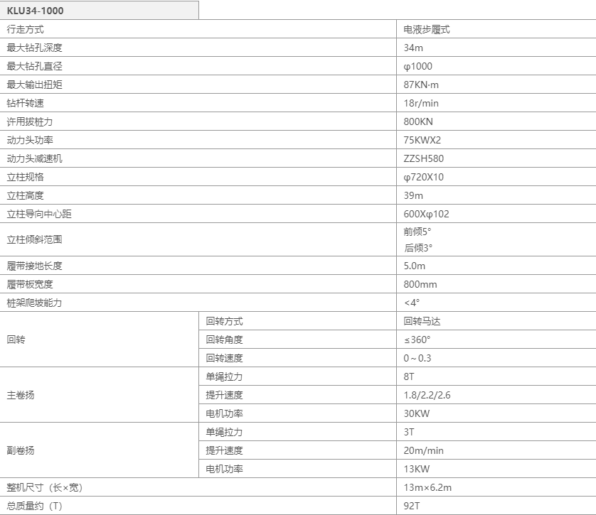 KLU34-1000长螺旋钻机参数